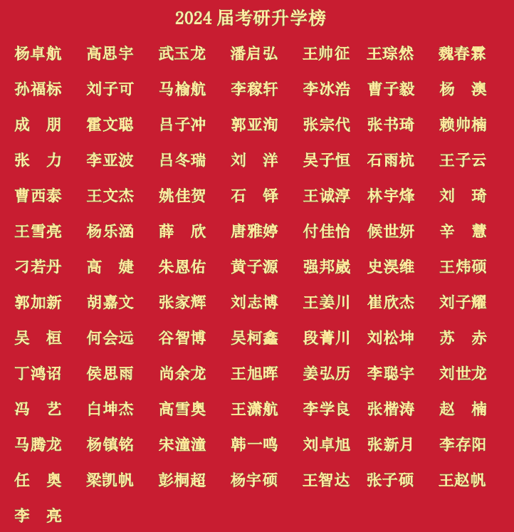 执笔为剑,披荆斩棘;以梦为马,不负韶华。2024年全国硕士研究生招生录取结果公布,公司学子捷报频传,共92名学子金榜题名,在此公司向考研上岸的学子们表示诚挚的祝贺!也期望有志考研的员工以他们为榜样,勤奋笃行、务实奋进,不惧困难、续写辉煌!