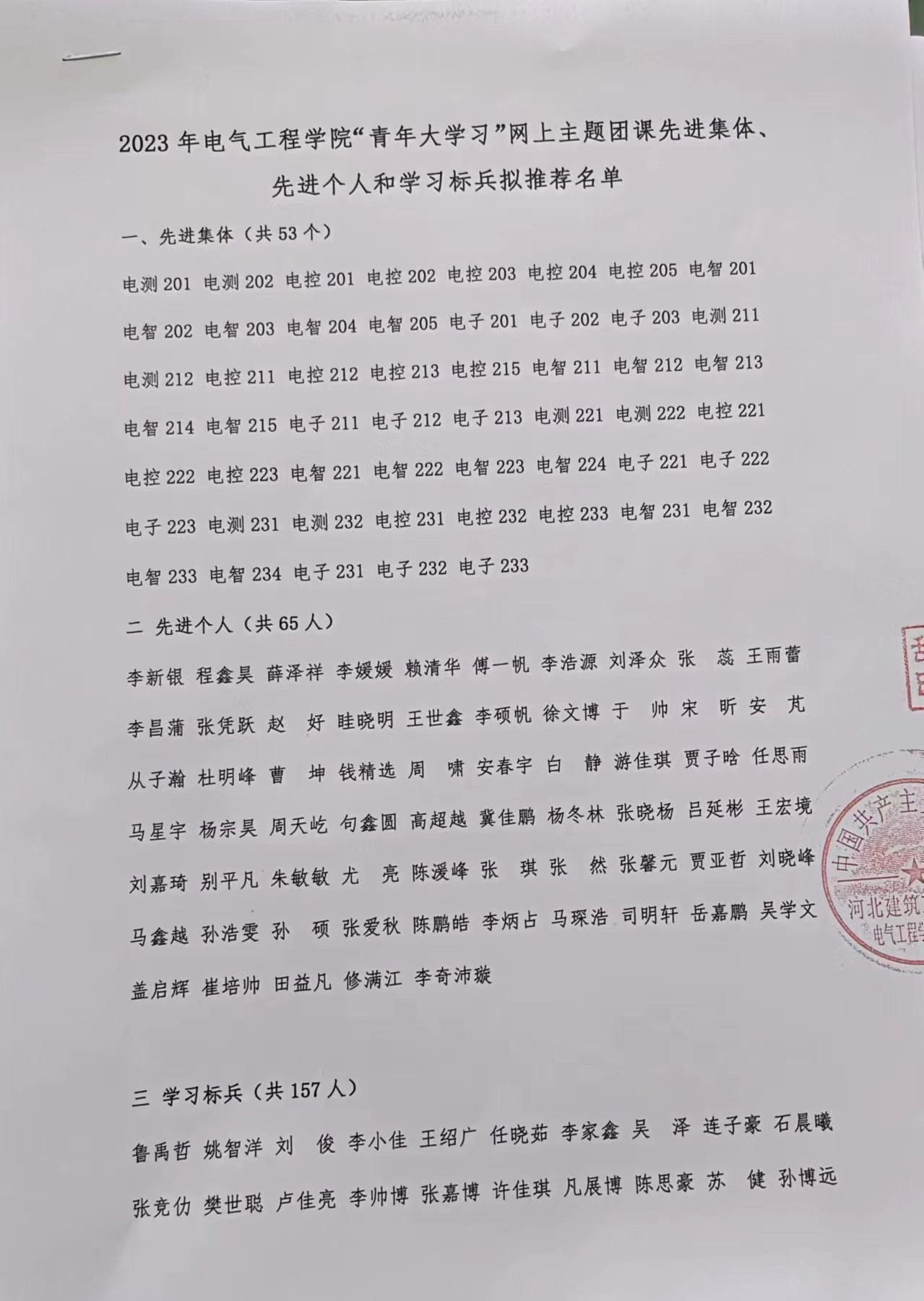 yl永利集团官网登录2023年“青年大学习”网上主题团课先进集体、先进个人和学习标兵拟推荐名单公示
