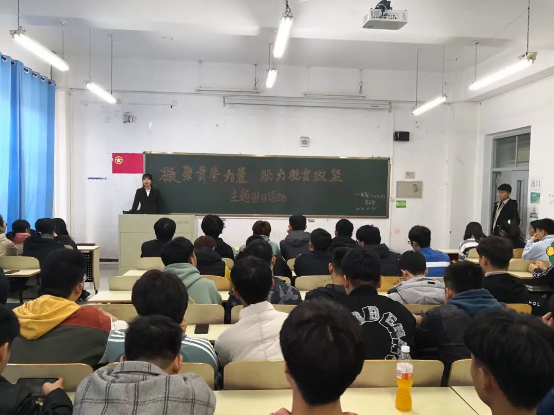 各团支部邀请辅导员老师出席此次活动,并通过宣讲、观看视频等方式开展此次活动。辅导员老师对各支部团员青年进行脱贫攻坚主题宣讲,通过介绍近年来脱贫攻坚的成果,让广大团员青年对相关扶贫工作加以了解,对脱贫攻坚工作有更深层次的认识,引导团员青年树立正确的价值观和人生导向。作为新一代青年,要有追求,有理想,有志向。跟随党的步伐,向着正确的的方向一路前进,为决胜全面小康、决战脱贫攻坚贡献自己的青春力量。